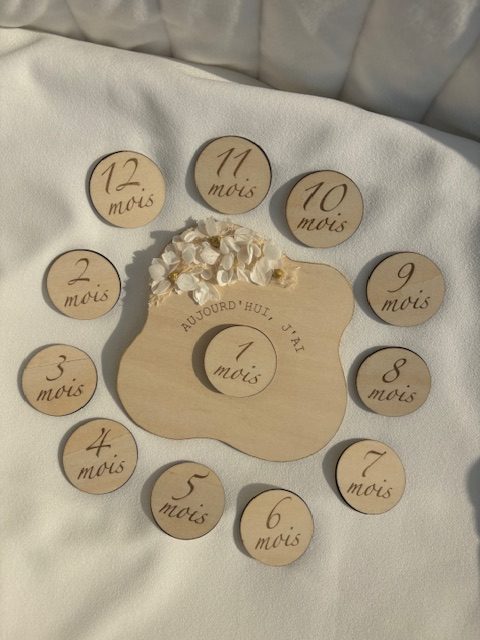 Contrairement aux cartes en papier, ce set en bois dure dans le temps. De plus, il conserve sa beauté année après année. Ainsi, il devient un véritable objet mémoire. Offrez-le comme cadeau de naissance raffiné. Il est aussi parfait pour une baby‑shower, un premier shooting photo, ou simplement comme souvenir précieux.