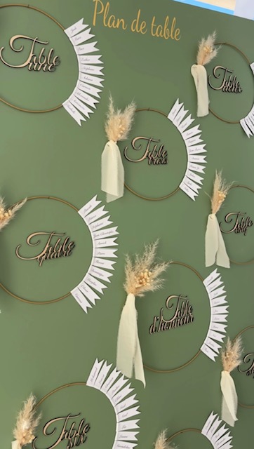 Faites sensation lors de votre mariage, baptême, anniversaire ou événement d’entreprise avec un plan de table sur mesure. Chaque création est entièrement personnalisée pour s’adapter à votre thème, vos couleurs, vos inspirations et vos envies.